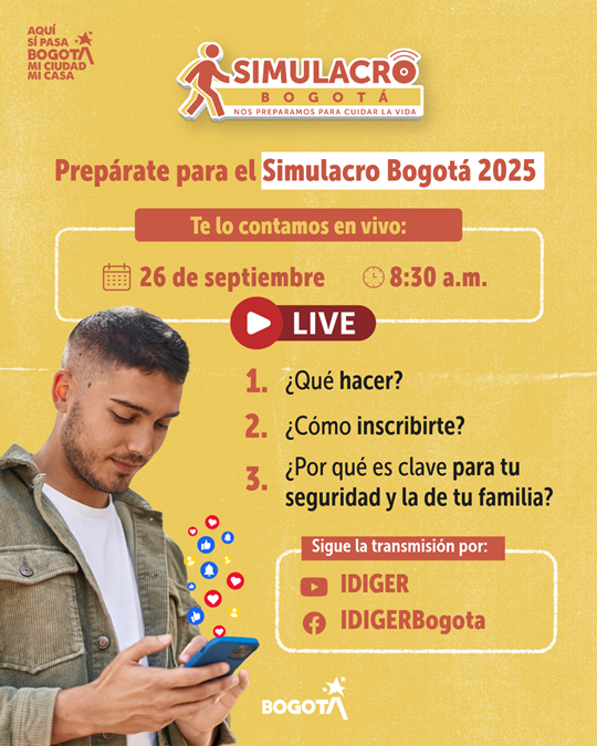 El Simulacro Distrital de Preparación, es un ejercicio que busca incrementar las capacidades de las comunidades, instituciones educativas, organizaciones, empresas y entidades privadas y públicas para probar las capacidades de respuesta, mejorarlas y sensibilizar a los habitantes de la ciudad. Este esfuerzo colectivo apunta a una ciudad más conocedora frente al riesgo de desastres, con capacidades de respuesta por parte de todos los actores para el manejo, antes, durante y después de una emergencia.